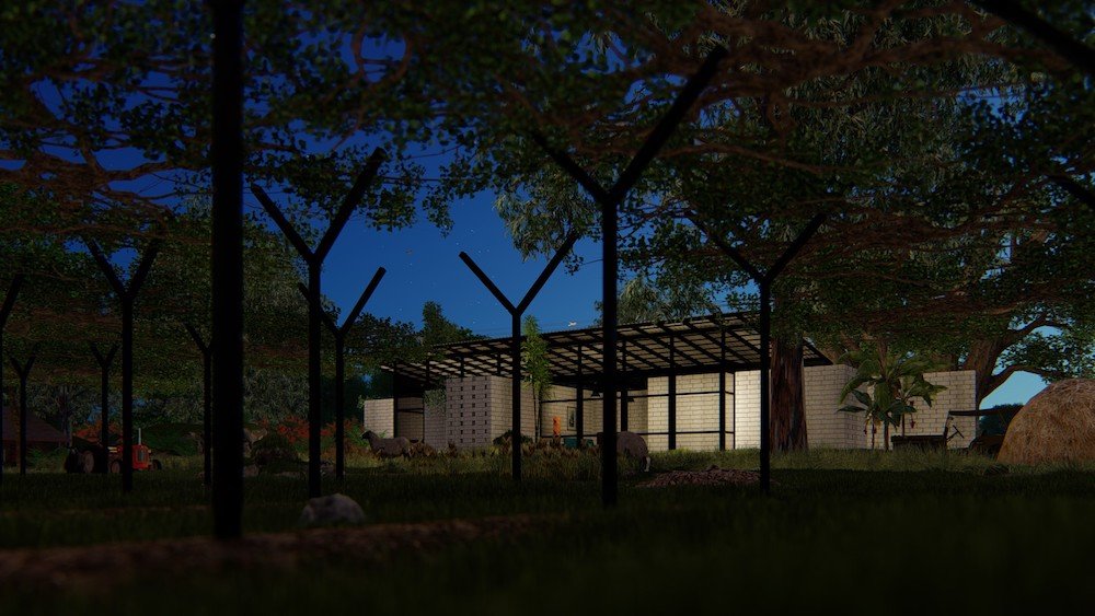 To increase the porosity the identity of house more as a transparent one from the farm side. These transparencies get illuminated during the night time, where the house appears to be a lantern at night. Hence we termed it as lantern