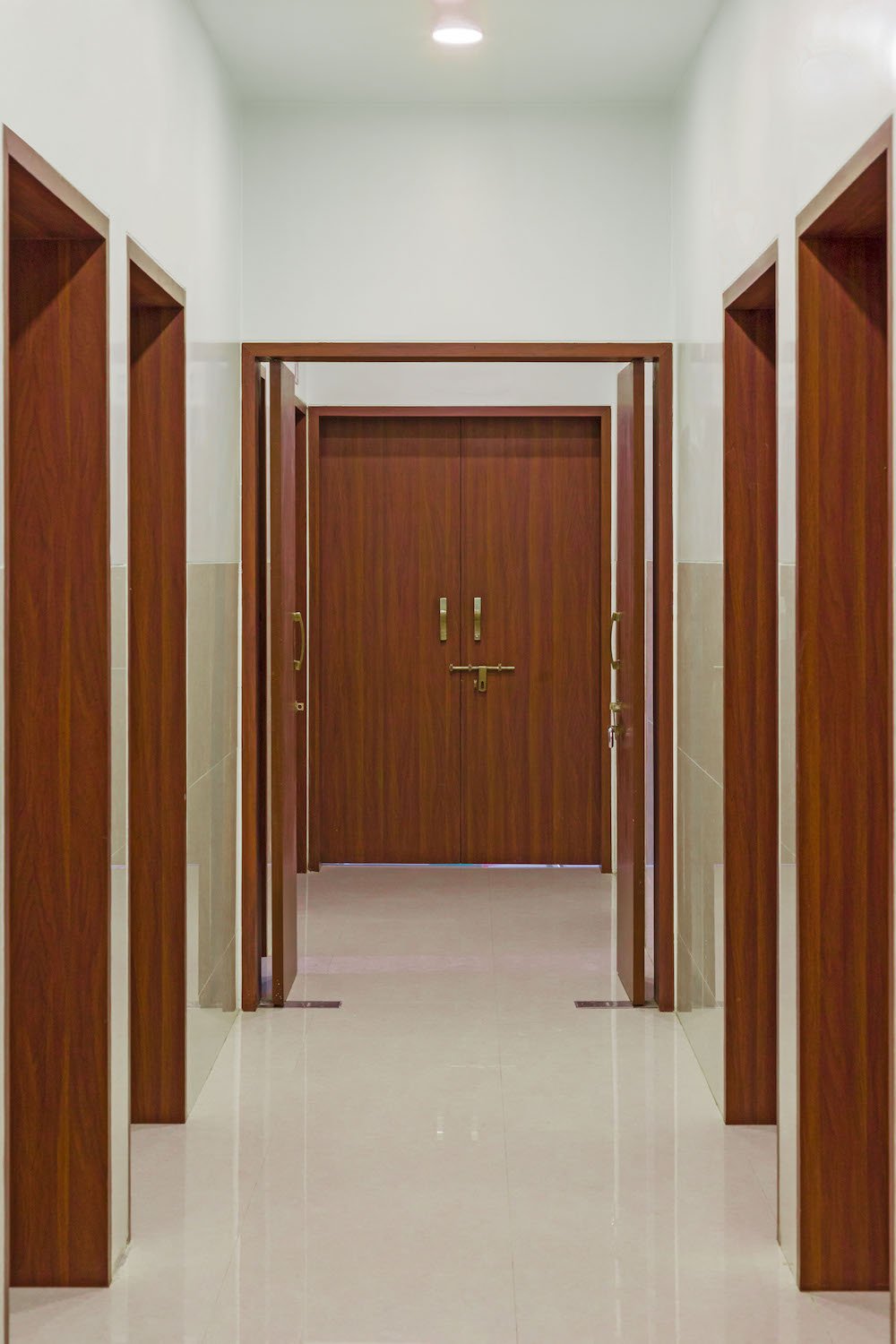The abiogenic escalier adjacent to the column below three-storied high canopy further continuous to the first floor. At the landing of steps, the doorway opens into a waiting space. The waiting area is oriented such, that frames the adjacent temple shrine. It divides the hospital floor space into a consultancy and viable areas.
